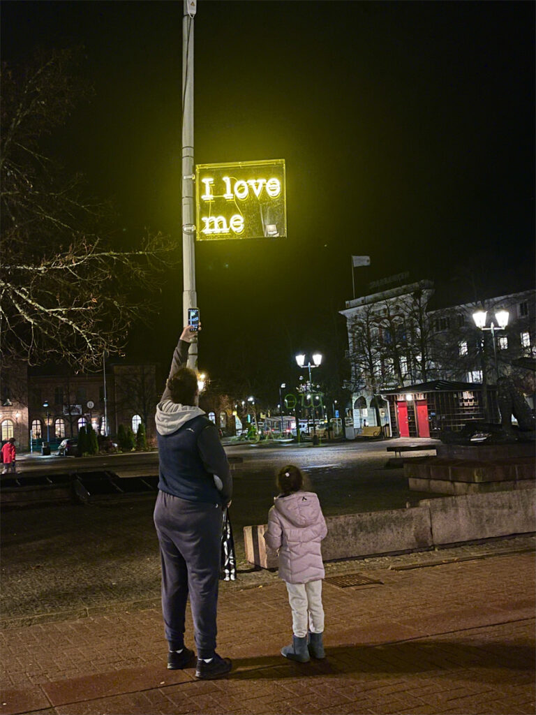 Neon sign and performance by Felice Hapetzeder – Sweden