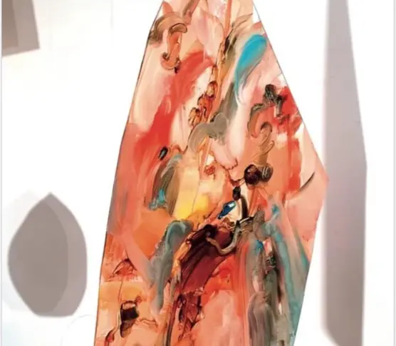 Katrin Westman is a visual artist based in Värmland who explores the meeting between painting and sculpture. "I need you forever and always" is a fragmented painting that floats in a construction whose threads hold everything together. The interaction between the floating painting and its shadows aims to be a declaration of love for the fluidity of creation and the liberation of a painting.